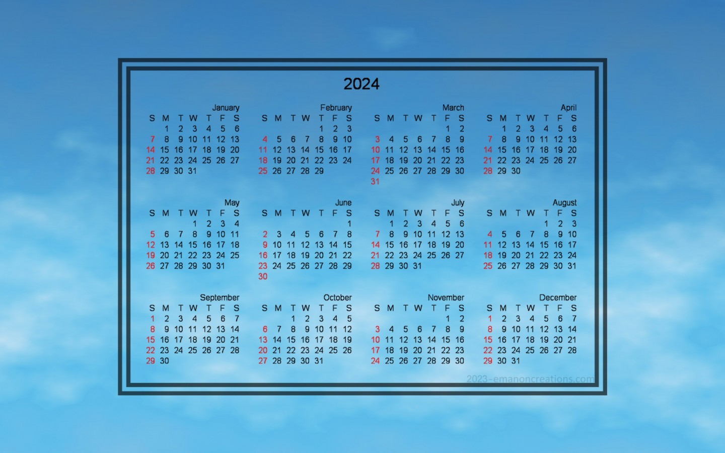 2024 Calendar 01 - 1440x900